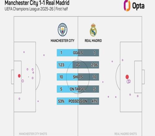 皇馬半場預期進球2.06,為有統計以來球隊歐冠淘汰賽單場紀錄