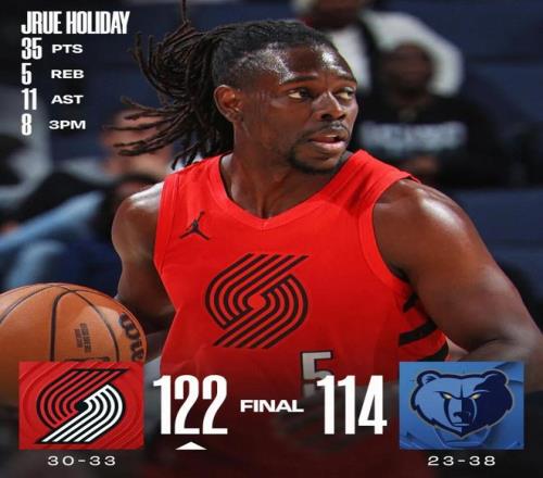 常規賽,開拓者客場122-114戰勝灰熊。