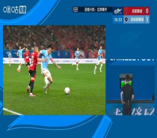 整場比賽的轉折點,應該就是老將姜至鵬被紅牌罰下。比賽才踢到5分鐘,客隊的深圳新鵬城就取得美好開局——新外援阿代米接球后擺脫對手后衛的防守,轉身抽射得分,幫助深圳新鵬城0-1領先。比賽的前18分鐘,客隊都踢得很好,成都蓉城盡管進攻不斷,但都沒有很好的破門機會。