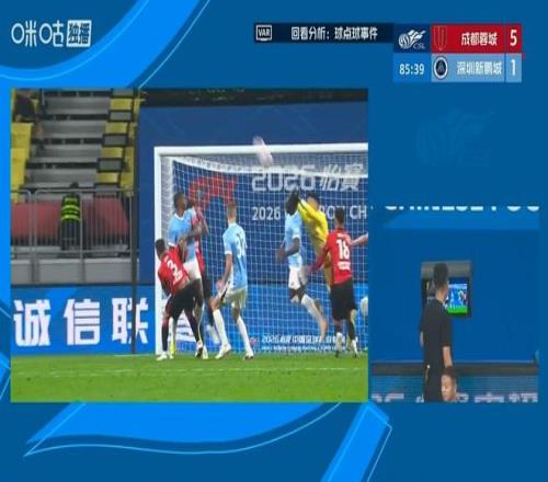 事實上深圳新鵬城也有機會再次破門。第85分鐘時劉殿座在門前撲球解圍時沒有擊中皮球,而是雙手擊打在對手前鋒的頭上,VAR介入后認定沒有點球。
