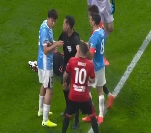 正是這個動作讓成都蓉城的外援羅慕洛上前質問楊一鳴,倆人都是指著鼻子互罵,情緒相當激動,主裁判王迪上來勸架也無濟于事,最后更是爆發大沖突,卷入雙方更多球員,場面一度十分混亂。