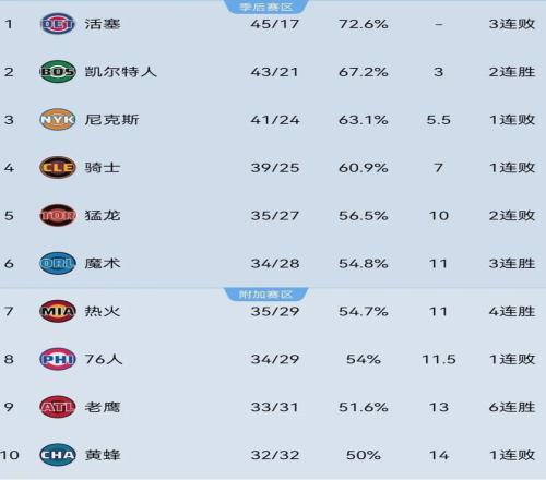 本賽季至今,凱爾特人取得了43勝21負戰績高居東部第二,僅落后榜首的活塞(45-17)3個勝場;騎士則以39勝25負位列東部第四,落后第三的尼克斯(41-24)1.5個勝場。