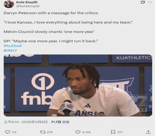 眾所周知,2026年NBA選秀大會有三大狀元熱門:AJ-迪班薩、達林-彼得森和卡梅隆-布澤爾。萬萬沒想到,前兩個已經喊著要退選了。達林-彼得森說道:“我愛堪薩斯,我愛這里的一切,我愛我的球隊,我可能會回來再打一年。”
