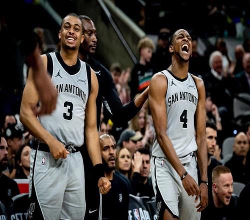 馬刺隊,卡斯爾13中7,三分球4中3砍下了23分3板5助,沖擊力十足。福克斯15中9轟下了了20分2板10助,兼顧了得分與串聯(lián)球隊。凱爾登約翰遜13中8,三分球7中4得到了20分1板2助;哈珀12中8,三分球4中3砍下了19分2板6助,兩人從替補席爆發(fā)。尚帕尼7中4得到11分5板4助2斷、布萊恩特7分3板、瓦塞爾6中0,罰球6中5得到5分5板3助、麥克勞林3分1板1助、沃特斯3分2助、奧利尼克3分1助、科內(nèi)特2分1板3助、比永博1板。