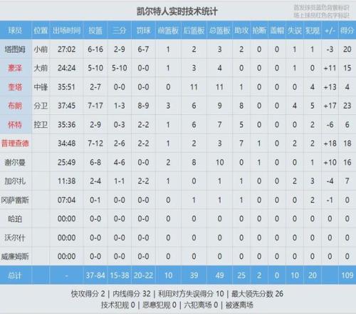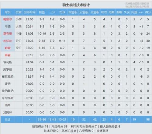 凱爾特人和騎士的比賽數據: