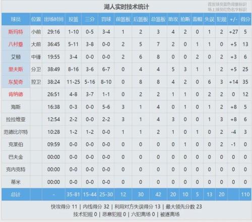 湖人反超掘金,排名升至西部第五位。最后看看湖人和尼克斯的比賽數據,說說你的感受: