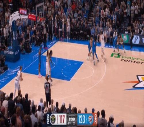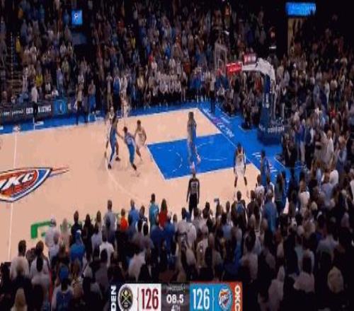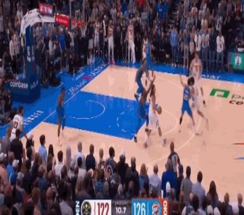 最后,戈登后場超遠三分,三不沾,雷霆三殺掘金。