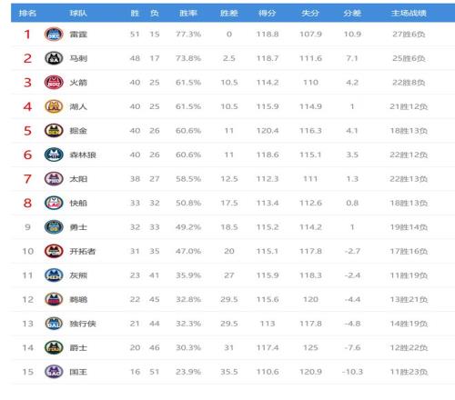 今日比賽后掘金、森林狼排名互換,鵜鶘、獨行俠排名互換,其他西部球隊排名不變。