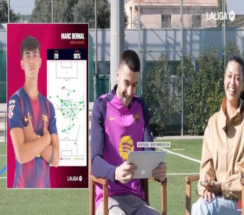 你適應得很快,隊友們也很歡迎你。不過在這里我們總會給球員準備一些小挑戰。我們來考考你,看你對隊友了解多少。我們準備了五張你隊友的傳球圖,你來猜猜是誰。第一張,這是對奧薩蘇納那場比賽,你們2-0贏球,拉菲尼亞梅開二度。從圖上看好像是一個中場,但其實不是。