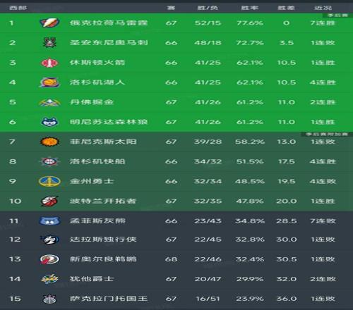北京時間3月14日,今日的NBA常規賽結束了所有比賽,我們看看西部的最新積分榜變動,主要的信息是:火箭107-105絕殺鵜鶘,森林狼127-117戰勝勇士,太陽115-122不敵猛龍,快船119-108掀翻公牛,開拓者124-114戰勝爵士,獨行俠105-138慘敗騎士,灰熊110-126不敵活塞!