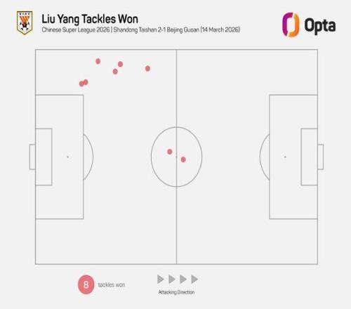 8次搶斷,劉洋刷新山東泰山隊史球員中超單場搶斷紀錄 懂球帝 2026-03-14 21:02:28 北京時間3月14日,中國足球超級聯賽第2輪迎來一場焦點大戰,山東泰山主場對陣北京國安。憑借著克雷桑和謝文能的進球,山東泰山最終2-1戰勝北京國安。本場比賽,山東泰山隊球員劉洋首發登場并打滿90分鐘。賽后,據知名數據機構Opta的統計,劉洋單場完成了8次搶斷,刷新了自2012年Opta采集相關數據以來,山東泰山球員中超單場搶斷紀錄。中超免費觀看_國安免費觀看_魯能免費觀看_中超高清在線_國安高清在線_魯能高清在線 中超 國安 魯能 山東泰山 年輕球員 劉洋(航天員) 上一篇: 戰報張玉寧破門北京國安12山東泰山 下一篇: 張玉寧:球隊最后被反超有些遺憾,但我們打出了想要的東西
