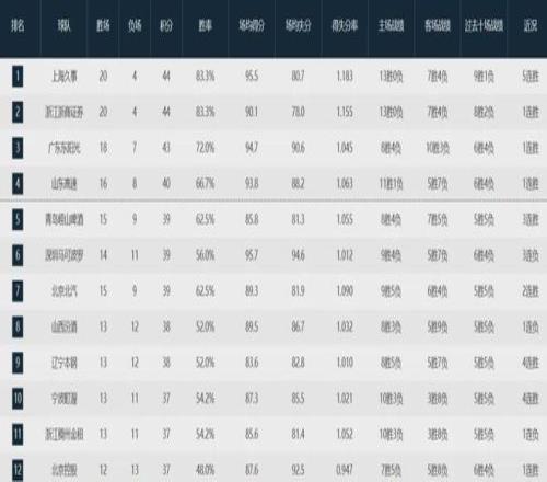 本賽季至今,廣東隊取得18勝7負排名聯盟第三,遼寧隊則以13勝12負位列聯盟第九。