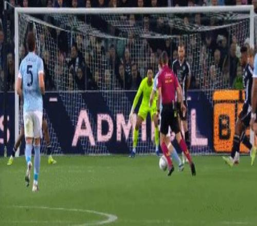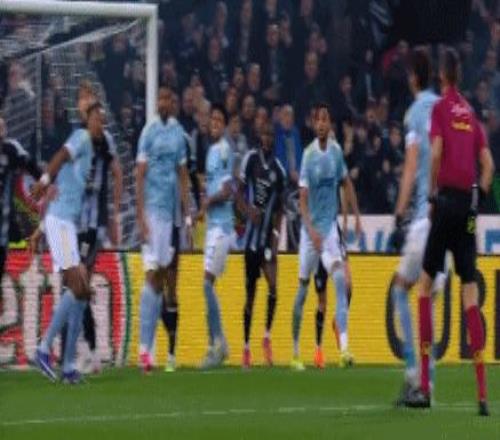 第9分鐘,洛卡特利放倒阿里薩拉,裁判吹罰犯規