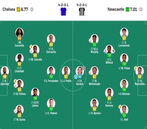 紐卡斯爾聯首發:32-拉姆斯代爾、12-佳夫、4-博特曼、21-利夫拉門托、3-霍爾、28-威洛克(77' 33-丹·伯恩)、41-雅各布·拉姆塞、23-雅各布·墨菲(78' 20-伊蘭加)、11-巴恩斯、27-沃爾特馬德(67' 7-喬林頓)、10-戈登