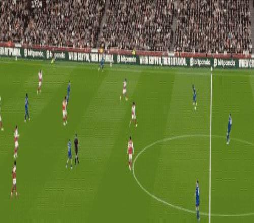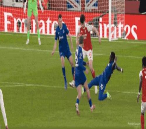 第44分鐘,賴斯開出角球,薩卡停球過大,之后的射門被封堵,馬杜埃凱的射門也被擋出,埃澤的射門放了高射炮,槍手球員的焦急體現的淋漓盡致。