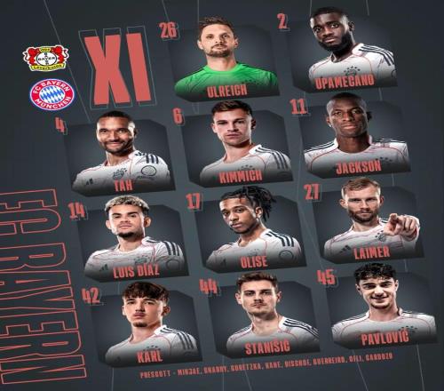 拜仁客戰勒沃庫森:凱恩替補,奧利塞、迪亞斯首發 懂球帝 2026-03-15 09:06:39 北京時間3月14日22:30,德甲第26輪展開較量,拜仁慕尼黑客場對陣勒沃庫森。賽前雙方首發公布。球員名單拜仁免費觀看_德甲免費觀看_勒沃庫森隊免費觀看_拜仁高清在線_德甲高清在線_勒沃庫森隊高清在線 拜仁 德甲 勒沃庫森隊 哈里·凱恩 荷西·迪亞斯 歐洲杯揭幕戰 上一篇: 勒沃庫森vs拜仁:希克、夸安薩首發,基米希、路易斯迪亞斯出戰 下一篇: 霍芬海姆vs沃爾夫斯堡:克拉馬里奇、卡巴克首發,埃里克森、林德斯特倫出戰