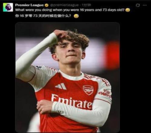 英超官方不禁親自發文提到:吧友們,你們16歲零73天時在做什么