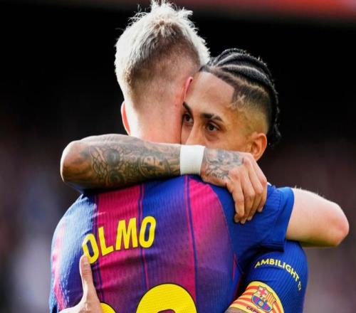 比賽剛剛開始8分鐘,巴薩就創(chuàng)造了點球機會??踩逶诮麉^(qū)內(nèi)被放倒,裁判判罰點球。拉菲尼亞主罰,他騙過門將,罰出了勺子點球!巴薩獲得夢幻般的開局。第16分鐘,奧爾莫在禁區(qū)外嘗試一腳遠射,被撲了出去。2分鐘后,坎塞洛制造對方禁區(qū)內(nèi)手球。巴薩再次獲得點球機會。依然是拉菲尼亞主罰,他再次罰進,梅開二度!