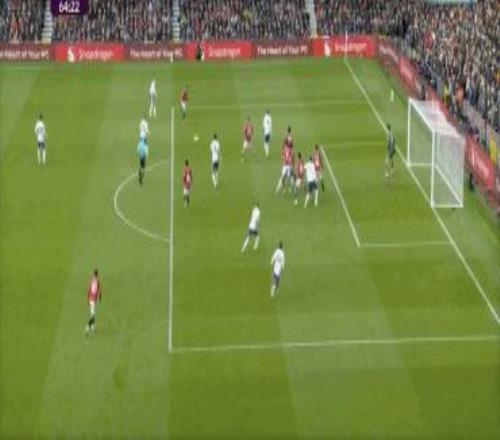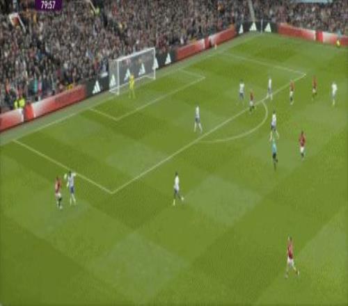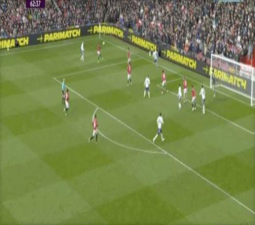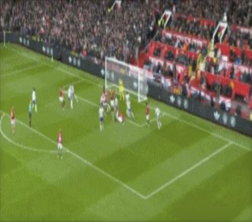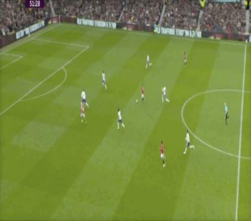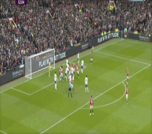 第53分鐘,B費右側角球傳中,卡塞米羅前點頭球攻門,皮球擊中后門柱入網,1-0!曼聯取得領先。