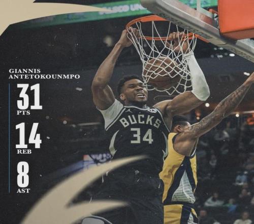 2024年,雄鹿首輪不敵步行者,字母哥季后賽報銷;