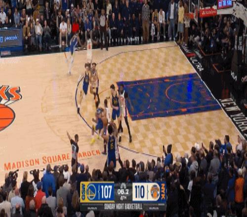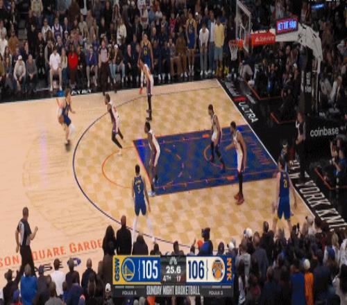 最后20多秒的關鍵時刻,勇士105-106僅落后尼克斯1分,波姐3分線外落位后,倉促出手搶投了一個3分