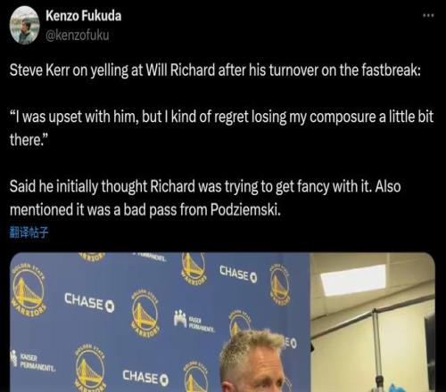 除此之外,科爾談到了庫里的傷病問題,透露庫里在賽前進行了個人訓練,自己認為他本賽季肯定會回歸,但恢復時間不確定是一周、兩周,還是更長的時間,因為他的狀況有些棘手。