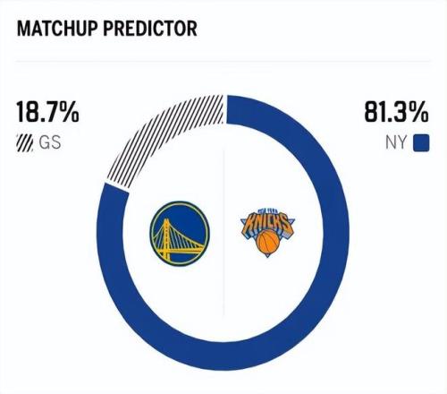 賽前,美媒ESPN對(duì)本場比賽進(jìn)行了勝率預(yù)測,尼克斯隊(duì)勝率高達(dá)81.3% ,勇士勝率則僅有18.7% ,差距非常明顯。