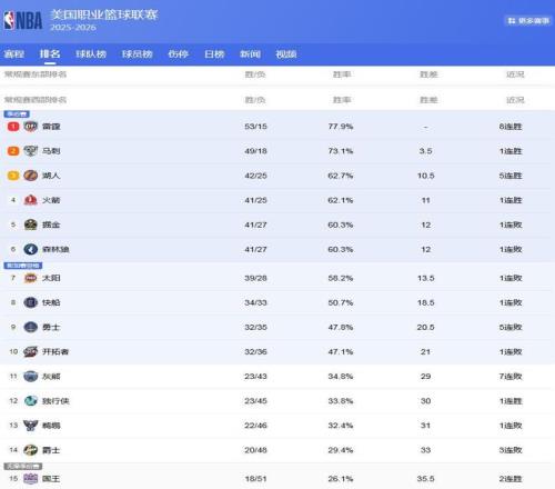 NBA25-26賽季正在火熱進行中,而打到現在,各支球隊的成功都在15以內了,排名上的爭奪也是陷入了白熱化,打得好,球隊排名提升,打得不好,排名下降,失去季后賽的有力對陣形勢,所以這對于各支隊伍來說都很重要,競爭也是變得更加激烈,導致NBA排名大變臉:火箭湖人搶第3,3隊爭西部第5,騎士隊第4難保!