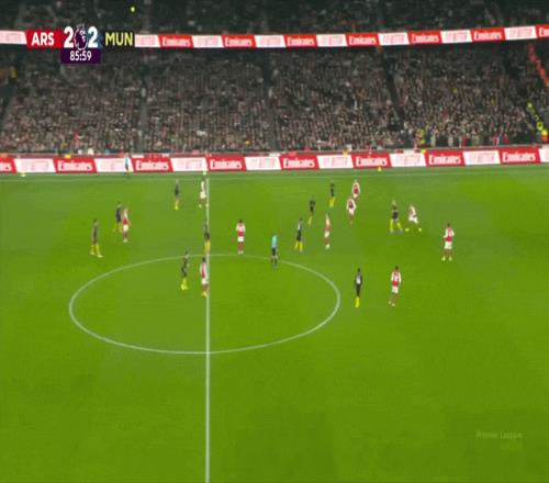 另一個例子來自接下來一周3比2戰勝阿森納的比賽,曼聯門將拉門斯大腳長傳找謝什科,梅努和費爾南德斯處于爭奪第二點的理想位置。