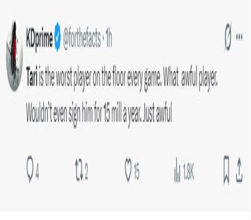 KD球迷:伊森是場上表現最差的球員,他是一個很糟糕的選手,就算給他每年1500萬都不值,他太差勁了。