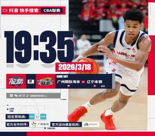 常規賽賽事預告遠征東北客場對陣遼寧 廣州龍獅籃球俱樂部 2026-03-18 09:17:48 2025-2026賽季CBA聯賽常規賽 第二十七輪 - 遠征東北 客場挑戰遼寧2026年3月18日 明晚 19:35廣州朗肽海本(客) — 遼寧本鋼(主)直播:抖音、快手搜索 CBA聯賽(注:本場為潛力賽場次) 遠征免費觀看_遼寧省免費觀看_賽事預告免費觀看_遠征高清在線_遼寧省高清在線_賽事預告高清在線 遠征 遼寧省 賽事預告 職業生涯 cba聯賽 上一篇: 意外!克雷桑領銜多位泰山球員公開現身山東男籃主場,贏得點贊 下一篇: 宮魯鳴:張子宇是世界獨一無二的人才我們希望她控制范圍大一點