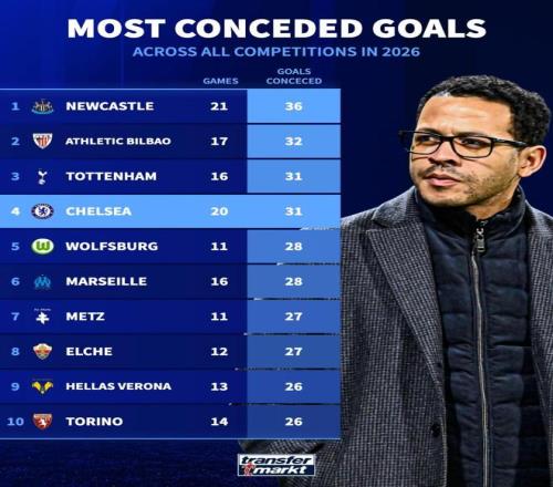 北京時間3月18日,切爾西在歐冠1/8決賽次回合的比賽中主場0-3完敗于巴黎圣日耳曼,兩回合總比分2-8被淘汰出局。與此同時,根據德轉的統計,藍軍2026年各項賽事的丟球數已經達到了31球,同期歐洲五大聯賽球隊并列第三多,與近況糟糕的熱刺相同。