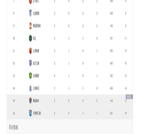 天津津門虎兩輪過后負-9分,積分榜墊底;暫時排在他前面的幾支球隊有申花、國安、海港、浙江等強隊,而排名更靠前的,則是本賽季沒被扣分、因而提升了運營預算的幾支升班馬,津門虎本賽季的保級難度同樣很大。