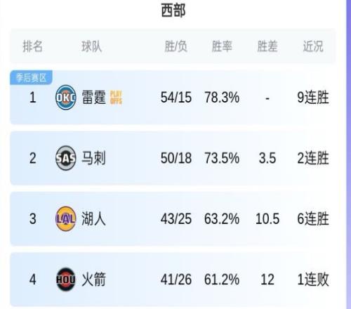 緊隨其后的馬刺只落后3.5個勝場,再贏兩場快船再輸兩場,基本也能鎖定了。