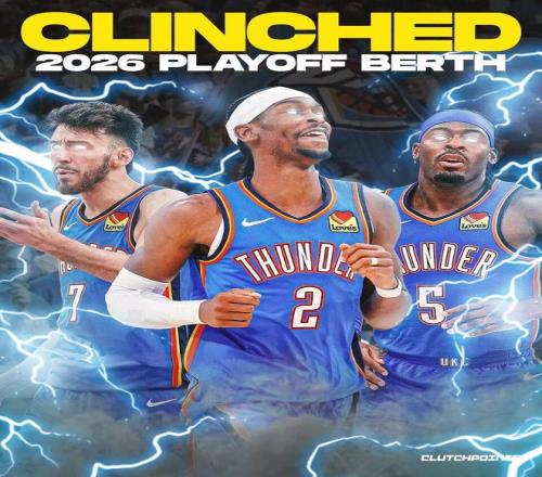 雷霆9連勝提前13場鎖定了季后賽,又是聯盟第一支。