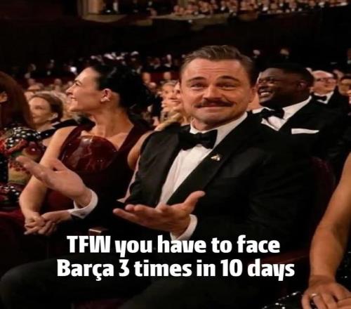 根據賽程安排,巴薩與馬競的歐冠八強戰2回合較量將分別在4月9日和15日進行。而在這之前,兩隊還將在4月5日凌晨展開西甲第30輪的比賽。換句話說,巴薩和馬競將在10天時間里3次交手。馬競官方社媒之所以曬出小李子的攤手表情包,也正是因為這個。