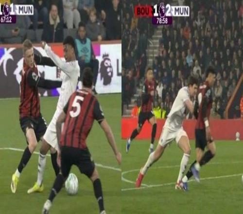 比賽的關鍵轉折點出現在馬奎爾對埃萬尼爾松的犯規上。當值主裁直接向這位曼聯中衛出示紅牌將其罰下,并判給伯恩茅斯一粒點球。隨后,朱尼奧·克魯普主罰命中,將比分扳為2-2。這使得曼聯在比賽的最后階段不得不以十人應戰,最終艱難地保住了一分。