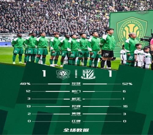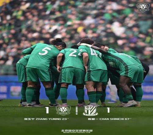 最終,北京國安主場1-1戰平上海申花。