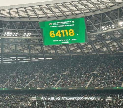 北京時間2026年3月21日消息。今天下午,中超聯賽上演一場焦點戰,北京國安主場VS上海申花。雙方經過90分鐘激戰,最終國安1-1戰平申花,張玉寧、陳晉一分別建功。本場比賽工體觀眾人數為:64118人。