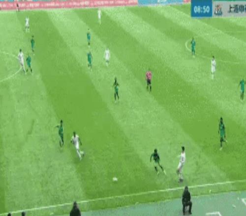 第68分鐘,申花獲得前場任意球,左邊后衛陳晉一展現了頂級的左腳腳法,皮球兜出漂亮的弧線,申花1-1國安!