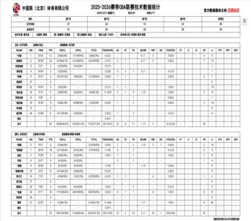 2025-2026賽季CBA常規賽第二十八輪,遼寧本鋼對陣北京北汽的比賽于21日晚在遼寧體育館進行,遼寧本鋼隊最終以83:93不敵北京北汽。